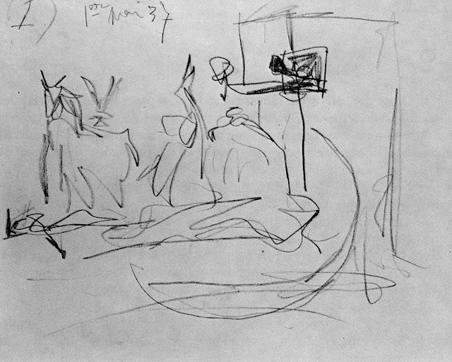 Picasso’s drawing for Guernica might look like simply a “messy sketch,” but it is an expression, direct from his mind, of his vision for possibly one of the greatest artistic achievements of modern art.