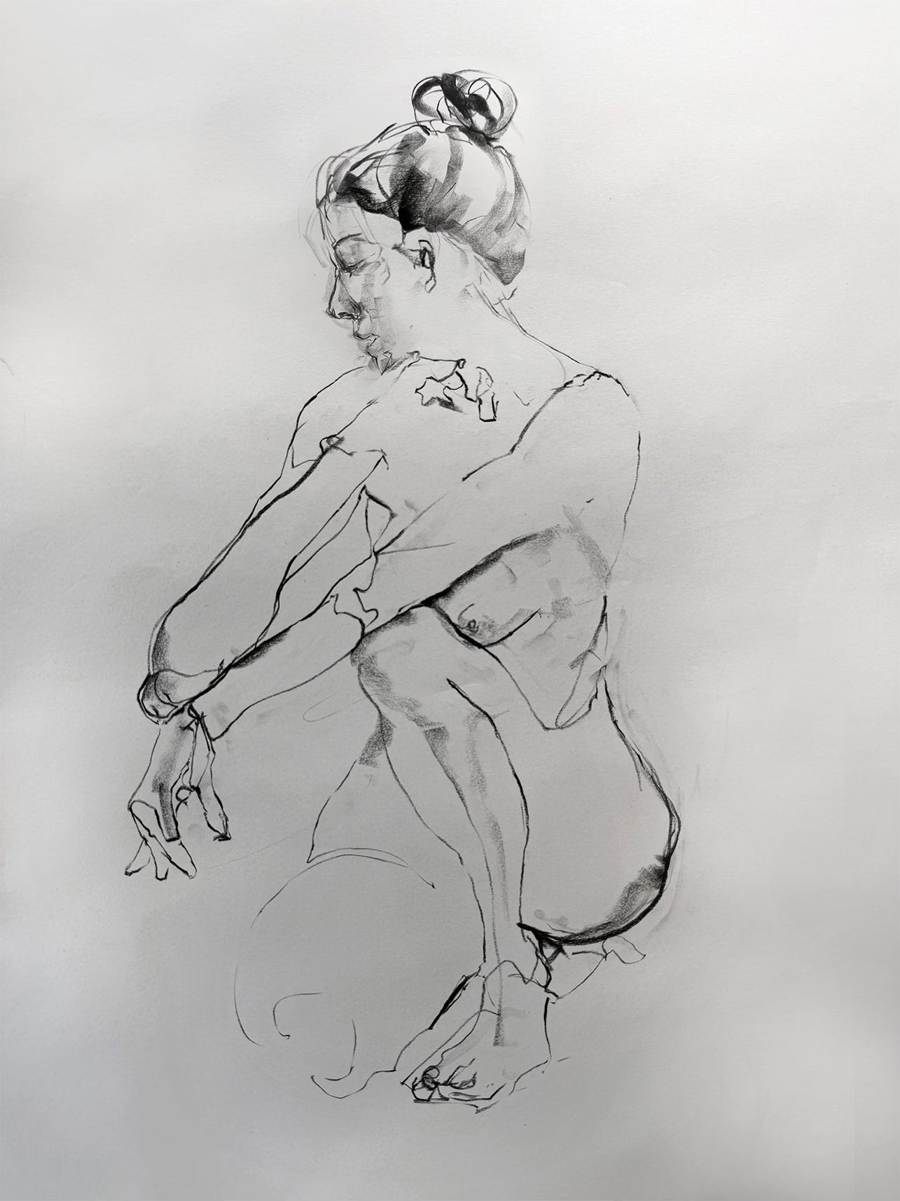Try a few contour drawings next time you’re at life drawing or working from home. It’s a great way to drop into “drawing mode”