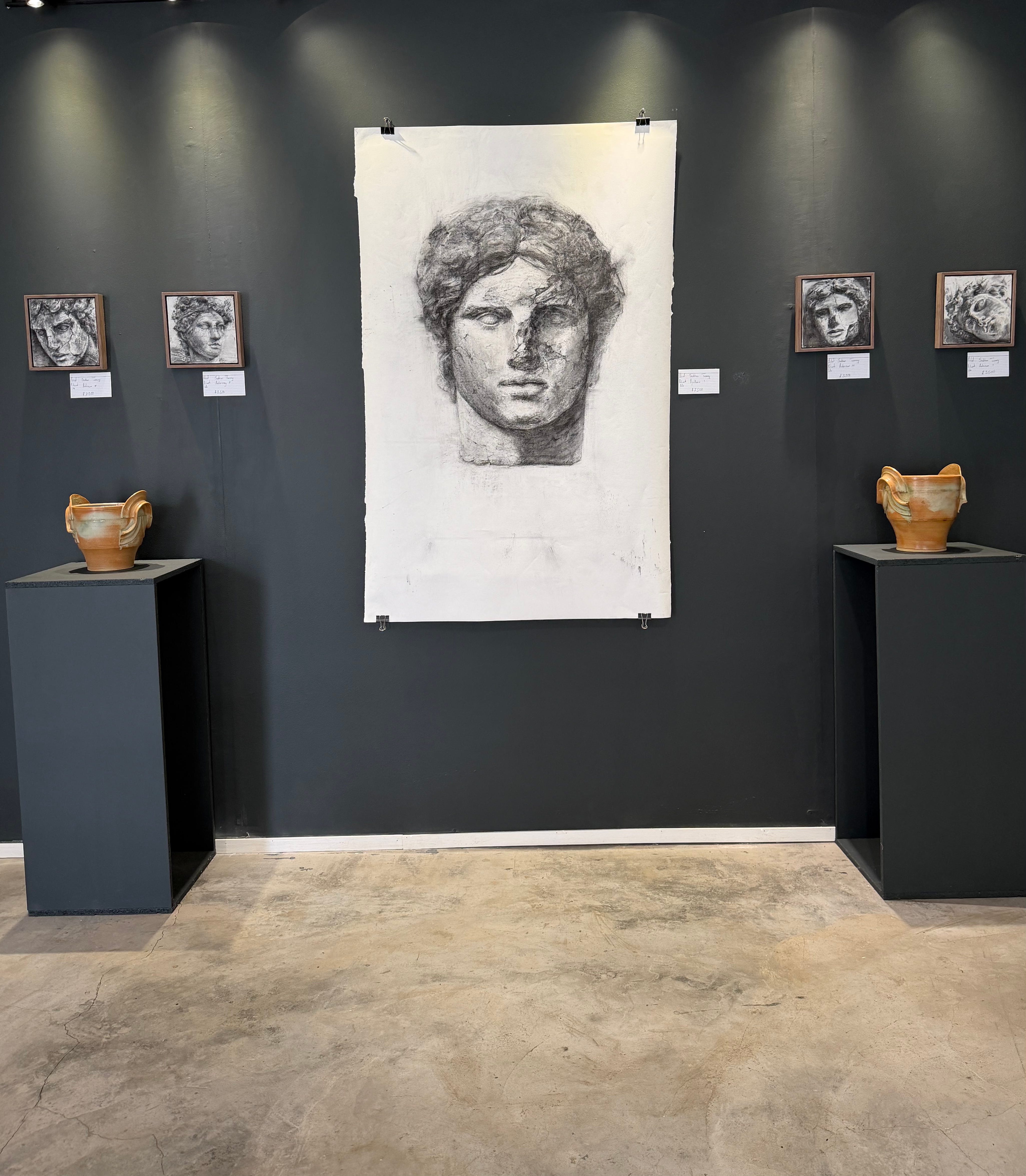 I definitely don’t think we need formal training to create beautiful realism and accurate drawings. But in my work, I don’t often achieve that level at all. So, the drawings I made prioritized an experimental and instinctive process over the outcome, in order to arrive at classical form. I intentionally wanted to invoke archetypes - the Apollonian ideal, the heroic, the eternal, the beautiful. Not to adhere to legacy, but to reinvent a new vision of those archetypes through the act of drawing. Or, through the act of discovering the drawing. So, in a way it was the process that became completely abstracted: throwing charcoal powder onto the surface, using sandpaper as a drawing tool, erasing and wiping back carefully to find the image. Drawing only occurred at the very end, to create fine texture and cracks.