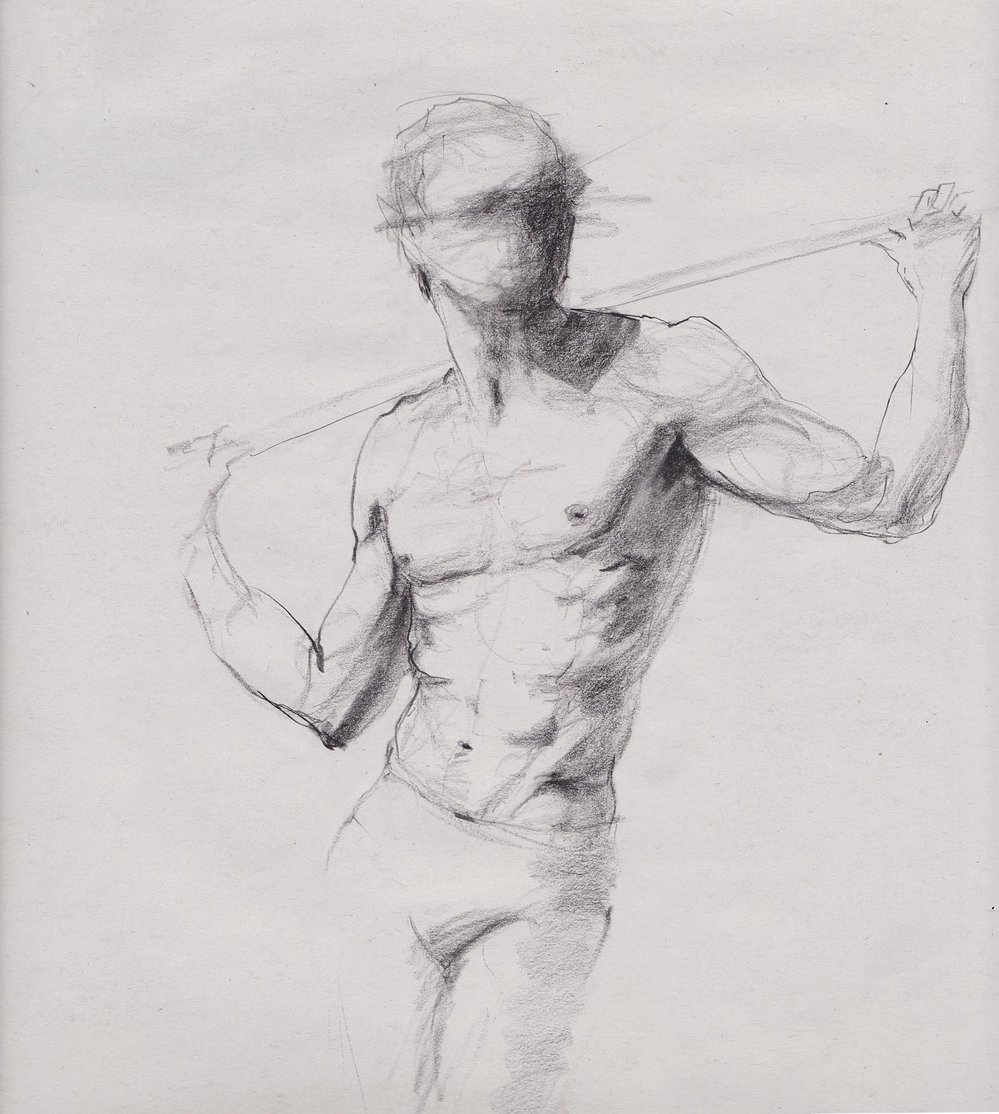 Youâll know that my entire approach to figure drawing favors an intuitive and natural way of drawing over a strict academic approach. Or even an approach that âsimplifiesâ the forms and turns them into stylized shapes. I think itâs imperative that figure drawing students learn DRAWING before they learn anatomy. And to that end I encourage people to use their line to search out the forms that they see, instead of bending their lines to fit shapes or conceptualized forms - even if those conceptualized forms are accurate muscle shapes (since theyâre still conceptualized in a sense).